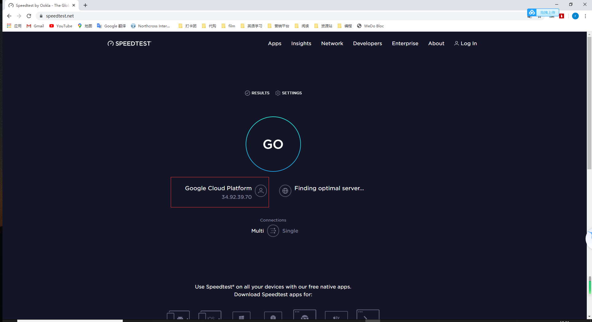 4、如果加速器配置成功,您的ip显示为34.92.39.70,同时显示Google Cloud Plamform。