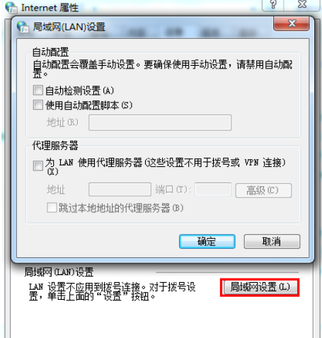 打开“局域网(LAN)设置”对话框,如图所示: